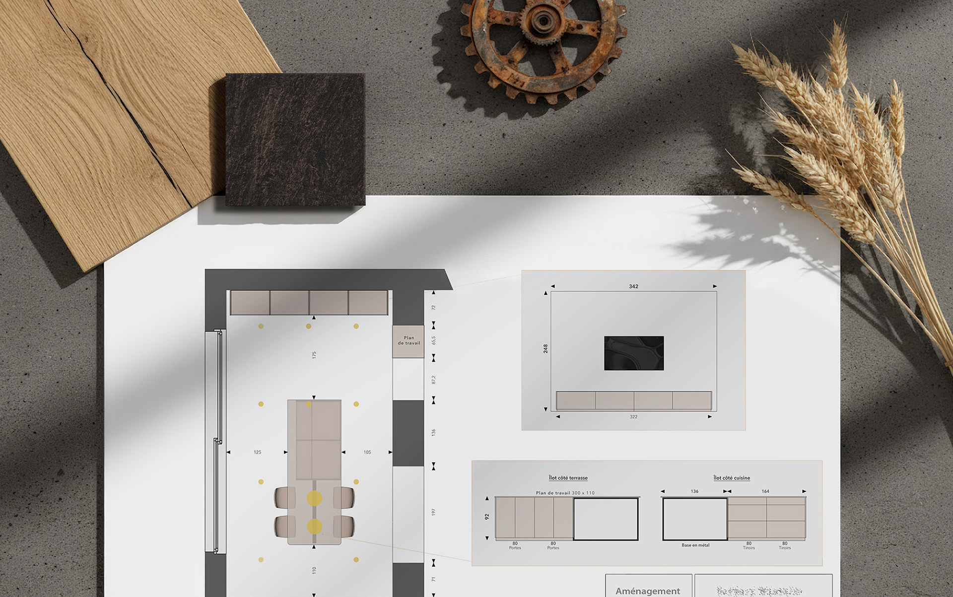 Le propriétaire de cette maison m’a contacté avec des doutes concernant une extension vide, à laquelle il n’avait pas encore trouvé de fonction. Au fil des échanges, un beau projet a pris forme : transformer cet espace en un prolongement naturel de la cuisine existante, organisé autour d’un îlot mêlant plan de travail et table de repas. En toile de fond, un coin TV accompagné de rangements sur mesure vient compléter l’ensemble, le tout souligné par un papier peint élégant qui apporte caractère et cohérence à la pièce. Un aménagement réfléchi, des matériaux soigneusement sélectionnés et une décoration en harmonie avec son mode de vie, présent et à venir.